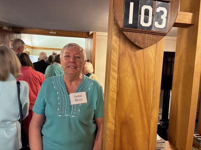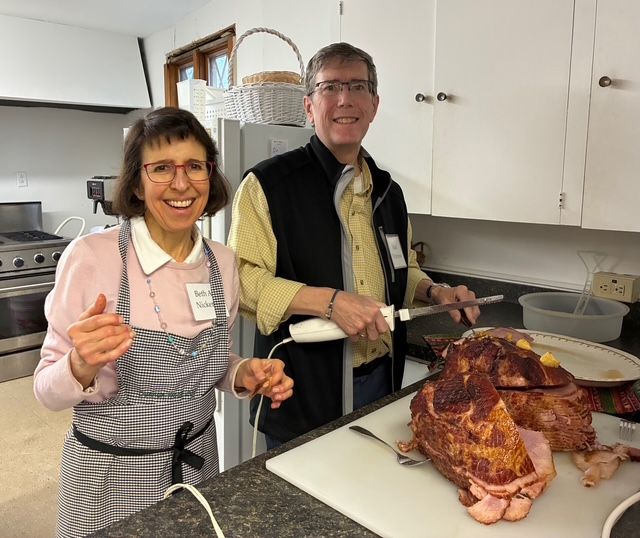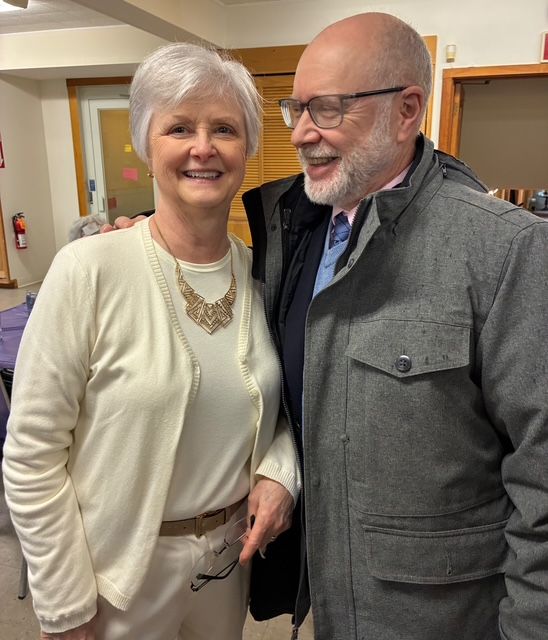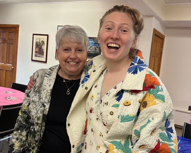 Connie Burt and Marsha Kleinz with Yam collection for Bath Food Bank November 2022